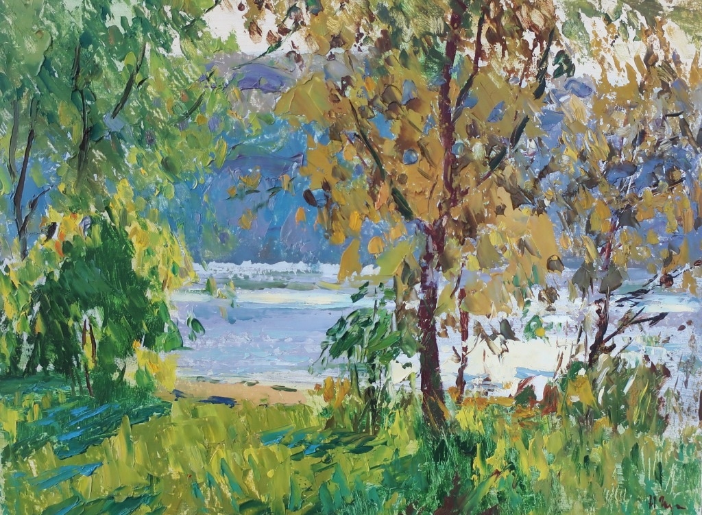 У озера 35-55 см. картон масло 1970 е. Герасименко С.М. 1926