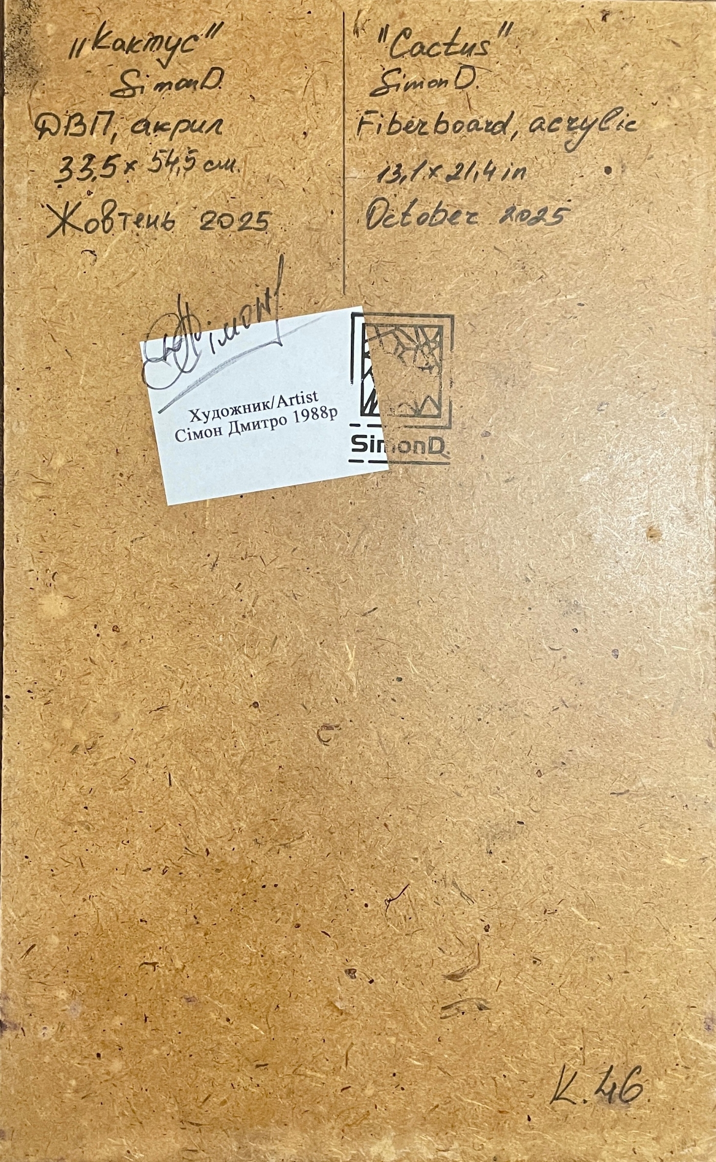 Кактус 33,5-54.5 см., ДВП, акрил 2025 год