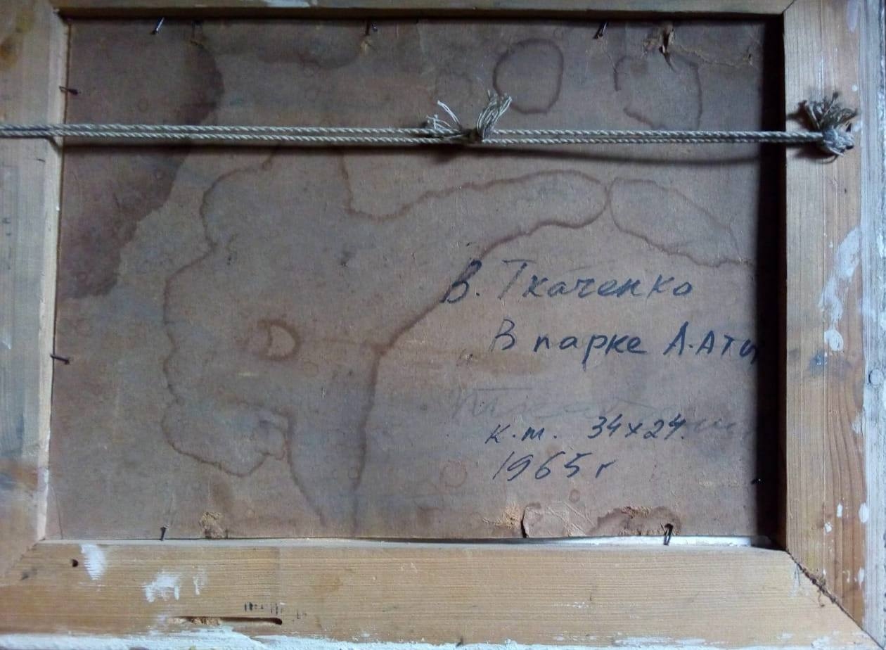 В парке Алма-Аты 34-24 см., картон, масло 1965